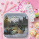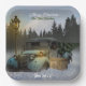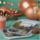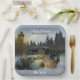 Klassischer blauer LKW mit einem Weihnachtsbaum. Pappteller