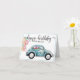 Diese skurrile Geburtstagskarte beinhaltet ein klassisches blaues Bug-Auto in Aquarellfarbe, das mit Geschenken innen und Ballons, die an den hinteren Stoßfänger gebunden sind, beladen ist. Über dem Auto steht "Glücklicher Geburtstag" in einem lustigen, handgeschriebenen Schriftart. Es gibt einen Ort, an dem man sich mit einem Namen personalisieren kann. Sie können auch das Geburtstagsjunge/Mädchenalter/Jahr an der Tür des Autos hinzufügen. Im Inneren befindet sich ein rotes Auto (man kann das Jahr auch auf diesem Auto hinzufügen).