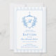 Feiern Sie die Taufe Ihres Sohnes mit dieser zeitlosen Wappen-Einladung mit Blumenakzenten, einer Monogramm-Buchstaben-Option und einem klassischen Cross-Design. Ideal für elegante Christliche Taufen oder katholische Taufen. Vollständig anpassbar.