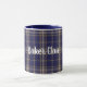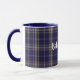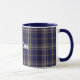 Große schauende schottische Clan-Tasse getan im klassischen Regentschaft karierten Muster blauen und tan Bäcker Tartan. Kundenspezifischer weißer Text ist bereit zu personifizieren, um zu lesen, was Sie wollen.
