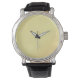 Klassischer Elegant Gold Aquamarin Herren Leder Armbanduhr