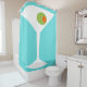 Dieser Klassiker-Film-Martini-Duschvorhang kennzeichnet einen Türkishintergrund und das Bild einer weißen Silhouette eines Martini-Glases. Innerhalb des Glases ist eine prachtvolle grüne Olive mit einem orange Piment. Dieses ist eine Spaßpostkarte für jeder, das wünscht, dass sie ein Charakter in einem klassischen Film waren. Gerüttelt nicht gerührt, bitte!