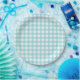 Klassischer Gingham Karo Kariertes Muster Blau Pappteller