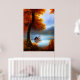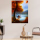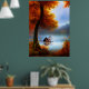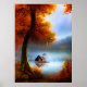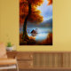 Klassischer Herbst - eine Hütte mit Bäumen am See, Poster