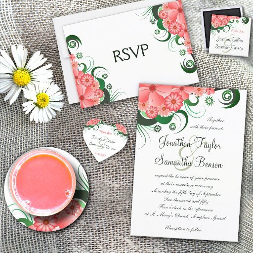 Pink Floral Hibiscus on White Custom Wedding SetDesignt von Marina