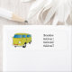 Fahren Sie auf Ihrer nächsten Straßentour oder in diesem klassischen Limettenwagen bis zum Strand. Gezeichnet in lustigen Cartoon Stil.