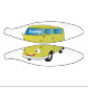 Fahren Sie auf Ihrer nächsten Straßentour oder in diesem klassischen Limettenwagen bis zum Strand. Gezeichnet in lustigen Cartoon Stil.
