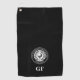 Erstellen Sie Ihr eigenes Golfhandtuch mit mit Monogramm Initialen. Ein klassisches Design mit einem Siegeskranz, der einen Golfball und Tee umrahmt. Diese bearbeitbare Vorlage kann für einen Golfclub, einen Country Club, einen Firmennamen, einen Teamplayer, einen Golfclub oder einen einzelnen Golfer angepasst werden. Ideal für Feiertage, Firmenveranstaltungen, Wettbewerbe, Turniere und vieles mehr. Druckfarben: Schwarz/Weiß. Bestellen Sie die Kollektion für beliebtere Golf-Geschenkideen online!