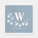 Personalisierter Name des Monogramms Floral Wreath Napkins in Dusty Blue
