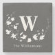 Klassischer Monogramm Name Schwarz-weißer Blumenkr Steinuntersetzer