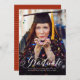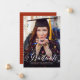 Diese einfache und klassische Ankündigung von Abschlüssen zeichnet sich durch ein großes vertikales Foto und das Wort "Absolvent" in einem klassischen Skript aus. Der koordinierende, rot gestreifte Backer kann mit Ihrer Wahl einer Schule oder Lieblingsfarbe angepasst werden