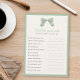Editierbarer Spieltitel und Textfragen für Babydusche oder Brautparty. Mit einem handgemalten Bogen mit subtiler karierter Sage Green und Elfenbeinhintergrund; bearbeitbarer Rahmen und Hintergrundfarbe vorne und hinten.