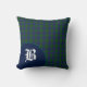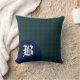 Stilvolles kariertes Kissen getan im traditionellen karierten Muster blauen und grünen Barclaytartan. Ein Grün umrissener blauer Kreisbereich, in der Unterseite verlassen vorder, hat ein weißes Buchstabemonogramm, das bereit ist, mit Ihrer Familieninitiale zu personifizieren. Hübsches Akzent-Wurfskissen mit einem klassischen Muster und einem Monogramm.