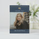 Dieses klassisch elegante Foto Abschluss Dankeschön-Karte verfügt über einen goldenen Graduierungsdeckel und einen einfachen Rahmen mit anpassbarem Text und Foto auf der Vorderseite. Der Rücken hat eine persönliche Nachricht und Unterschrift. Eine tolle Art, Ihren Absolventen zu präsentieren. Klicken Sie auf die Schaltfläche Bearbeiten, um dieses Design zu personalisieren.