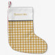 Fügen Sie Ihren Namen zu diesem festlichen Weihnachtsfest-Strumpf mit einem fröhlichen Gingham-Muster, in tiefgelb und weiß