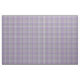 Klassischer Tartan kariert. Grau, lila Hintergrund. Weiße, lila Streifen auf hellgrauem Hintergrund.