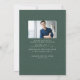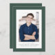 Diese einfache und raffinierte Ankündigung und Einladung eines Abschlusses zeigt ein Foto auf der Vorderseite, umgeben von einem dunkelgrünen Rahmen mit einem Kräuterknochen-Tweed-Effekt. Der Stoff-Look (bitte beachten Sie, dass es nicht wirklich Stoff) verleiht ihm einen klassischen akademischen Stil und der einfache Typ ist die perfekte personalisierte Touch. Die Kartenrückseite ist ein passendes grünes Muster mit Platz für ein anderes Foto und einen Einladungstext für eine Graduierungsparty - oder sie können leer verlassen werden. Diese Originalgradkarte von Lea Delaveris Design ist auch als Ankündigung und Einladung zum Download erhältlich und kann in verschiedenen Farbtönen in der Herringbone tweed Abschluss Kollektion gefunden werden.