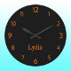 Klassische und elegante Schwarz und Neon Sunset Orange Name Large Clock