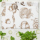 Bringen Sie mit unserem klassischen Braun- und Weißhandtuch Erntedank-Schwänze auf Ihre Zuhause. Dieses minimalistische Handtuch ist mit Kürbissen, Eichen, Kuchen und vielem mehr illustriert und kann mit Schriftart nach Ihren Wünschen angepasst werden. Bild durch Makrovektor auf Freepik.