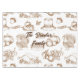 Bringen Sie mit unserer klassischen Tischdecke in Braun und Weiß Erntedank auf Ihre Zuhause. Dieses minimalistische Tischdecken ist mit Kürbissen, Eichen, Kuchen und vielem mehr illustriert und kann mit dem braunen, feinen, wirbelnden Schriftart ganz nach Ihren Wünschen gestaltet werden. Bild durch Makrovektor auf Freepik.