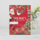 Diese Weihnachtskarte beinhaltet den Weihnachtsmann, einen Kranz, Strumpf, verschiedene Geschenke mit rotem Bogen/Band, Poinsettias und Heiligenbäume. Auf der Rückseite des Hotels befindet sich ein grüner Hintergrund mit goldenen Glocken und Stöcken. Personalisieren Sie es für Ihre Bedürfnisse. In meinem Geschäft finden Sie passende Produkte.