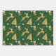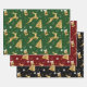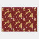 Klassisches 3 Farben Gold Weihnachtsbaum-Muster Geschenkpapier Set