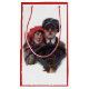 Ein altmodisches Bild eines strengend aussehenden Mannes, der fährt, während sein Mädchen gegen ihn schnippt und ihn mit den Augen der welpen Liebe anschaut. Geschehen in schwarz, rot und weiß. Die Vintage Romantik. Personalisieren Sie, wenn Sie möchten. Die Rückseite der Tasche ist vollständig anpassbar.