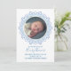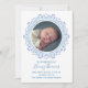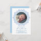 Klassische und elegante Geburtsankündigung mit einem eleganten Kranz in Babyblau. Ein elegantes Baby-Jungen-Foto-Meldebogen, ideal für neugeborene Fotos. Mit hellblau und schieferblau mit schlichter moderner Vegetation. Eine ganz einfach süße Baby Foto Ankündigung.