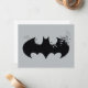 Ikonisches Batman-Logo, das sich in einer Fledermauswolke auflöst.