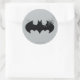 Ikonisches Batman-Logo, das sich in einer Fledermauswolke auflöst.