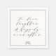 Fügen Sie Ihrer Cocktailstunde oder Ihrer Verlobungsfeier eine schicke Touch mit dieser Papierserviette hinzu. Das Design enthält das Zitat "Zur Liebe, zum Lachen und glücklich immer danach" in einer klassischen Schrift Typografie und 2 Textzeilen, ideal für Ihr Monogramm, Namen und das Jahr Ihrer Hochzeit. Ein toller Sake für Jubiläen, um sich an Ihren besonderen Tag zu erinnern. Teil unserer "Hochzeitsessentials - Klassische" Kollektion