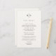 Teilen Sie Ihre Eheringsmenüs in elegantem Stil mit diesen monogramm Hochzeitsmenüs in warmen Elfenbeinecru mit Ihren Initialen in traditioneller Serifenschwarz Schrift, geteilt durch eine dünne vertikale Linie. Passen Sie den Kopf und die Menüpunkte an, die nach Kursen geordnet sind.
