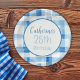 Zeitlos blau-weiß gehaltenes Gingham-Muster mit knusprigen, gleichmäßig verteilten Karos in einem sauberen, minimalistischen Stil. Dieses vielseitige Design vereint eine Touch von Landzauber und Vintager Einfachheit, die sich perfekt für alles eignet, von der Bauerndekoration über Picknickthemen, Küstenästhetik bis hin zu Klassikern des Alltags. Ein frisches und familiäres Aussehen, das sich wunderbar über die Jahreszeiten und Stile hinweg auswirkt. Blau und Weiß Gingham Muster mit personalisierten Namen und Party-Typinformationen.