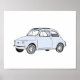 Klassisches Blue Fiat 500 Stift Rendering Poster