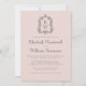Klassisches Blush Pink Monogramm-Wraath-Script Einladung