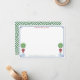 Zeitlos personalisierte Holidays Notenkartendesign mit Boxwood Lollipop Topiary dekoriert mit einem Floppy-Rot Bogen und in Ginger Jar Pflanzern gezeigt. Diese Aquarellelemente wurden von mir handgemalt, bevor sie in digitale Form gescannt wurden. Auf der Rückseite befindet sich ein "Griechischer Schlüssel"-Musterbacker. Sie können die Kontrastfarbe auf der Rückseite (hier als Grün dargestellt) in eine beliebige Farbe ändern, indem Sie das Designwerkzeug (unter dem Bereich für die Textanpassung, klicken Sie auf "Weitere Anpassung") eingeben und dann die Hintergrundfarbe auf der Rückseite ändern.
