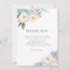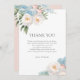 Fügen Sie Ihre eigenen Dankkartenkarten zum Brautparty mit diesem eleganten Design mit einer Dekoration von weichen blauen und rosa Blume und elegantem grünem Blattwerk an den Ecken. Kartenrückstände in bearbeitbarem staubrosa