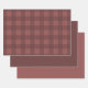 Dieses Set von Packpapier-Bogen weist ein bordeauxrotes Gingham-kariertes Muster auf, mit koordinierenden Bogen in zwei Schattierungen bordeauxroten Maroons.