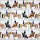 Ursprüngliches Entdeckungskunstmuster der klassischer Dressagepferde und -reiter durch pferdeartigen Künstler und Designer Carolyn McFann zwei des schnurrenden Katzen-Studios druckte auf QualitätsBaumwollgewebe für ReiterSportfreunde.