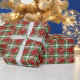 Eleganter Happy Holidays Gruß Wunschtext auf einem zeitgenössischen klassischen roten, dunkelgrünen und weißen tartan Muster Design.