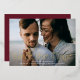 Ankündigen Sie Ihre Hochzeit im Stil mit dieser eleganten Folie speichern Sie die Datumskarten. Das Design zeichnet sich durch Ihr vollblutförmiges horizontales Foto mit "Save the Date" in Goldfolienschrift aus. Personalisieren Sie die moderne Foto Save the Date Karte mit Ihren Namen, Hochzeitsdatum, Hochzeitsort und Einladungsdetails. Auf der Rückseite der Karte finden Sie weitere Details wie Ihre Hochzeitswebsite in weißer Schrift auf solidem bordeauxrotem Hintergrund.
