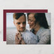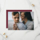 Ankündigen Sie Ihre Hochzeit im Stil mit diesem eleganten Foto speichern Sie die Datumskarten. Das Design zeichnet sich durch ein vollblutförmiges horizontales Foto mit "Save the Date" in weißer Schrift aus. Personalisieren Sie die moderne Foto Save the Date Karte mit Ihren Namen, Hochzeitsdatum, Hochzeitsort und Einladungsdetails. Auf der Rückseite der Karte finden Sie weitere Details, wie z.B. Ihre Hochzeitswebsite in weißer Schrift auf einem soliden bordeauxfarbenen/maronfarbenen Hintergrund.
