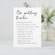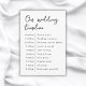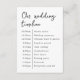 Klassisch elegante "unsere Hochzeitszeitszene" Umschließungskarte, die Sie Ihrer Hochzeitssuite hinzufügen oder am Eingang für Ihre Gäste geben können, um die Reihenfolge der Veranstaltungen zu erfahren. Dieses Design verfügt über bis zu 10 Steckplätze, aber Sie können es mit so viel, wie Sie benötigen, indem Sie auf die Schaltfläche, um das Design zu bearbeiten.