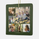 Erstellen Sie Ihre eigene Foto-Collage klassisch elegante Keepake-Baum-Ornament mit Imitaten Gold Frohe Weihnachtskalligraphie-Skript auf einem dunkelgrünen Hintergrund.