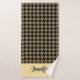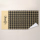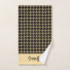 Personalisiertes Badetuch-Set mit einer Vorlage, um Ihren Namen am unteren Ende des Handtuches in einem schwarzen Skript, auf einem cremefarbenen Hintergrund hinzuzufügen. Darüber befindet sich ein goldbraunes und schwarzes klassisches Nagelkopfmuster, das einen beruflichen und eleganten Look verleiht.