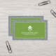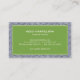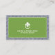 Eine stilvolle und klassische Visitenkarte mit einem Hauch von Glamour - diese Karte für Innenarchitekten enthält einen gemusterten, blauen und weißen Hintergrund mit Ihrem Namen oder Firmennamen, der elegant in einer gerahmten Kiste in Kalkgrün und Weiß mit einem Vintagen Türknopf-Logo angezeigt wird. Entworfen von 1201h, eine Boutique Design Agentur spezialisiert auf Logodesign und Markenmomente für kleine Unternehmen und Einzelpersonen. © 1201AM CREATIVE