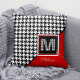 Klassisches Hahnentrittmuster und Monogramm | Rot Kissen