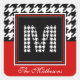 Klassisches Hahnentrittmuster und Monogramm | Rot Quadratischer Aufkleber