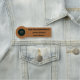 Klassisches hellbraunes Ledermuster und Logo Namensschild