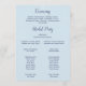 Dieses klassische Hochzeitsprogramm für weiße Blume eignet sich perfekt für eine Frühjahrshochzeit. Das elegante Blumendesign besticht durch weiche Elfenbein- und Weißrosen, Pfannkuchen und Chrysanthemum mit Touchs von periwinkelblauen Aquarellfarben und grünem Blattwerk. Geben Sie den Namen der Braut und des Bräutigams, das Hochzeitstermin und den Ort ein, danken Sie der Nachricht, der Reihenfolge des Dienstes und dem Brautparty.
